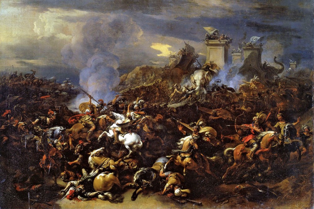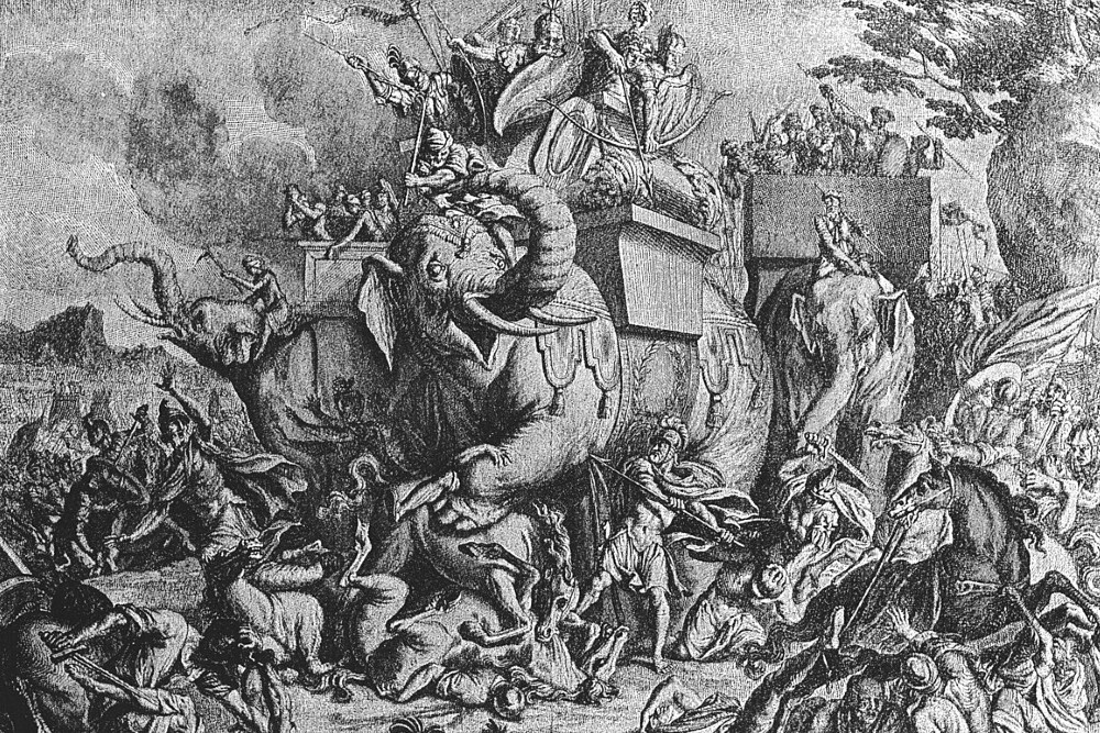 Alexander the Great came up against war elephants in 326 BCE at the Battle of the Hydaspes (depicted above) when he fought against the forces of Porus in the Indus Valley region. Porus had around three hundred of the beasts at his disposal however, this did not help him gain victory against the Macedonian forces. The Greek archers were able to kill many of the drivers and wound the animals which caused mayhem in the ranks of the Indian army as the elephants ran wild.